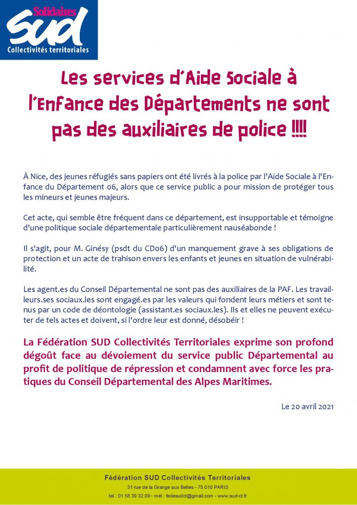 Solidaires national Les services d’Aide Sociale à l’Enfance des Départements ne sont pas des auxiliaires de police !!!! 21 Avr, 202122 Avr, 2021 Lire la suite Solidaires national Qui va payer la dette ? 21 Avr, 202122 Avr, 2021 Lire la suite Solidaires national Mobilisation contre la réforme de l’assurance chômage 21 Avr, 202121 Avr, 2021 Lire la suite Solidaires national Toutes et tous dans la rue contre le gouvernement et sa réforme de l’assurance chômage ! 20 Avr, 202121 Avr, 2021 Lire la suite 99100101102103 Nos commissions FéminismeLGBTI+ImmigrationInternational Les collectifs amis Étiquettesantifascisme antiracisme assurance chômage cheminots chômage conditions de travail crise sanitaire culture féminisme grève hopital intermittents international lutte lutte interprofessionnelle lycéens manifestation mobilisation précaires précarité rail rassemblement retraites répression salaire sans-papiers santé service public sncf Solidaires solidarité sud education 31 sud rail SUD Santé Sociaux sud éducation syndicat syndicats sécurité sociale Toulouse Université urgence sanitaire urgence sociale violences policières éducation éducation nationale Un seul cookie sera déposé sur ton ordinateur pour faciliter ta navigation. Pas plus ! Accepter Refuser