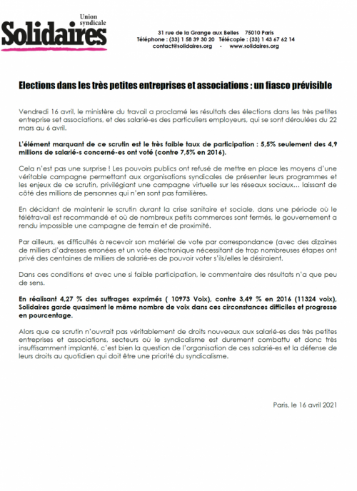 Solidaires national RSISL – réunion plénière par visio le samedi 24 avril 2021 à 18h 16 Avr, 202118 Avr, 2021 Lire la suite Solidaires national (SUD Commerces et Services) AMAZON : un an (et deux condamnations) plus tard 16 Avr, 202118 Avr, 2021 Lire la suite 100101102103104