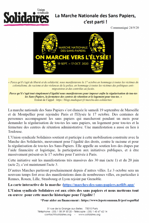 Solidaires national POUR FAIRE DISPARAÎTRE LES MIGRANT.ES … IL SUFFIT DE LES AFFAMER 18 Sep, 202020 Sep, 2020 Lire la suite ExpressionsSolidaires national Pour la solidarité avec le peuple algérien et la libération des détenus du Hirak 17 Sep, 202020 Sep, 2020 Lire la suite 117118119120121