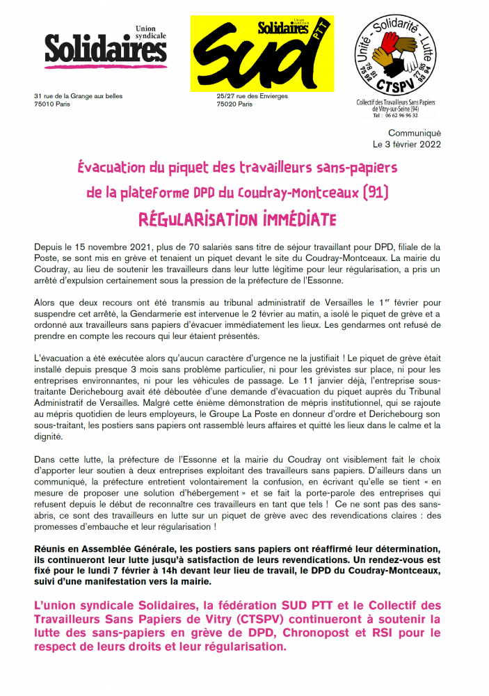 Solidaires national Rassemblement à l’Assemblée contre la loi 3DS le 8 février 2022 7 Fév, 202210 Fév, 2022 Lire la suite Solidaires national Unis contre la répression anti-syndicale 5 Fév, 202210 Fév, 2022 Lire la suite Solidaires national Soutien à Nantes Révoltée ! 4 Fév, 202210 Fév, 2022 Lire la suite Solidaires national Évacuation du piquet des travailleurs sans-papiers de la plateforme DPD du Coudray-Montceaux (91) – RÉGULARISATION IMMÉDIATE 3 Fév, 202210 Fév, 2022 Lire la suite Sud Educ Les nouvelles de Février de SUD Culture 31 3 Fév, 2022 Lire la suite Sud Educ Nouvelles du jeudi 3 Février 3 Fév, 202210 Fév, 2022 Lire la suite Tour des secteurs Stage 14 février – Précarité 3 Fév, 202210 Fév, 2022 Lire la suite Sud Educ Illettrisme 3 Fév, 202210 Fév, 2022 Lire la suite Tour des secteurs Stage – Comment militer en tant que féministe à Solidaires ? 3 Fév, 202216 Fév, 2023 Lire la suite 3940414243 Nos commissions FéminismeLGBTI+ImmigrationInternational Les collectifs amis Étiquettesantifascisme antiracisme assurance chômage cheminots chômage conditions de travail crise sanitaire culture féminisme grève hopital intermittents international lutte lutte interprofessionnelle lycéens manifestation mobilisation précaires précarité rail rassemblement retraites répression salaire sans-papiers santé service public sncf Solidaires solidarité sud education 31 sud rail SUD Santé Sociaux sud éducation syndicat syndicats sécurité sociale Toulouse Université urgence sanitaire urgence sociale violences policières éducation éducation nationale Un seul cookie sera déposé sur ton ordinateur pour faciliter ta navigation. Pas plus ! Accepter Refuser
