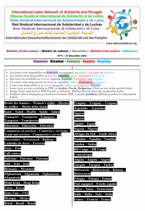Solidaires national Réseau syndical international de solidarité et de luttes : Bulletin n°11 5 Jan, 20226 Jan, 2022 Lire la suite Solidaires national Nouvelle doctrine sanitaire de 2022 : marche ou crève !!! 4 Jan, 20226 Jan, 2022 Lire la suite Solidaires national FORCE ET COURAGE EN 2022 ! 1 Jan, 20226 Jan, 2022 Lire la suite Tour des secteurs Encore une rentrée catastrophique ! Vos droits: grève, droit de retrait.Toutes les infos ici: 31 Déc, 20216 Jan, 2022 Lire la suite Tour des secteurs Passage en catégorie B des auxiliaires de soins et de puériculture 31 Déc, 20216 Jan, 2022 Lire la suite Tour des secteurs Adhérer au syndicat 31 Déc, 20216 Jan, 2022 Lire la suite 5051525354 Nos commissions FéminismeLGBTI+ImmigrationInternational Les collectifs amis Étiquettesantifascisme antiracisme assurance chômage cheminots chômage conditions de travail crise sanitaire culture féminisme grève hopital intermittents international lutte lutte interprofessionnelle lycéens manifestation mobilisation précaires précarité rail rassemblement retraites répression salaire sans-papiers santé service public sncf Solidaires solidarité sud education 31 sud rail SUD Santé Sociaux sud éducation syndicat syndicats sécurité sociale Toulouse Université urgence sanitaire urgence sociale violences policières éducation éducation nationale Un seul cookie sera déposé sur ton ordinateur pour faciliter ta navigation. Pas plus ! Accepter Refuser