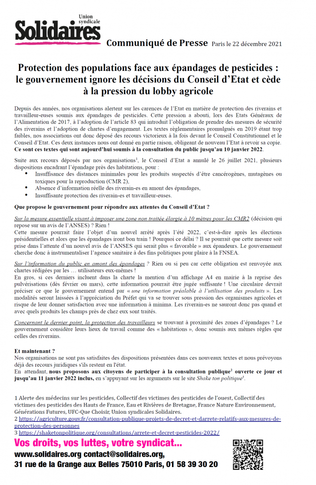 Tour des secteurs Brochure – « Contractuel.le.s dans la FPT » 24 Déc, 20216 Jan, 2022 Lire la suite Solidaires national Amiante : La SNCF condamnée en appel 24 Déc, 20216 Jan, 2022 Lire la suite Solidaires national Protection des populations face aux épandages de pesticides : le gouvernement ignore les décisions du Conseil d’Etat et cède à la pression du lobby agricole 22 Déc, 20216 Jan, 2022 Lire la suite Solidaires national Levée immédiate et sans condition du blocus de Gaza par l’État d’Israël !s condition du blocus de Gaza 22 Déc, 20216 Jan, 2022 Lire la suite Solidaires national Levée immédiate et sans condition du blocus de Gaza par l’État d’Israël ! 22 Déc, 20216 Jan, 2022 Lire la suite Solidaires national Une prime de fin d’année, mais pas de Père Noël pour les chômeurs/ses ! 22 Déc, 20216 Jan, 2022 Lire la suite Solidaires national Campagne Antiracisme & Solidarité / 18 décembre, ce n’était qu’un début, à toi, à vous, à nous de jouer ! 22 Déc, 20216 Jan, 2022 Lire la suite Solidaires national Un système hospitalier qui vacille 22 Déc, 20216 Jan, 2022 Lire la suite 5253545556 Nos commissions FéminismeLGBTI+ImmigrationInternational Les collectifs amis Étiquettesantifascisme antiracisme assurance chômage cheminots chômage conditions de travail crise sanitaire culture féminisme grève hopital intermittents international lutte lutte interprofessionnelle lycéens manifestation mobilisation précaires précarité rail rassemblement retraites répression salaire sans-papiers santé service public sncf Solidaires solidarité sud education 31 sud rail SUD Santé Sociaux sud éducation syndicat syndicats sécurité sociale Toulouse Université urgence sanitaire urgence sociale violences policières éducation éducation nationale Un seul cookie sera déposé sur ton ordinateur pour faciliter ta navigation. Pas plus ! Accepter Refuser