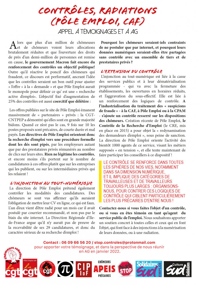 Solidaires national Contrôles, radiations (pôle emploi, caf) : Appel à témoignages et à AG 17 Déc, 20216 Jan, 2022 Lire la suite Tour des secteurs Procès de Léo: verdict et perspectives antifascistes.Le communiqué du comité de soutien. 16 Déc, 20216 Jan, 2022 Lire la suite Solidaires national SALAIRES : Toutes les raisons de lutter 16 Déc, 20216 Jan, 2022 Lire la suite Sud Educ Nouvelles du jeudi 16 décembre 16 Déc, 20216 Jan, 2022 Lire la suite 5455565758 Nos commissions FéminismeLGBTI+ImmigrationInternational Les collectifs amis Étiquettesantifascisme antiracisme assurance chômage cheminots chômage conditions de travail crise sanitaire culture féminisme grève hopital intermittents international lutte lutte interprofessionnelle lycéens manifestation mobilisation précaires précarité rail rassemblement retraites répression salaire sans-papiers santé service public sncf Solidaires solidarité sud education 31 sud rail SUD Santé Sociaux sud éducation syndicat syndicats sécurité sociale Toulouse Université urgence sanitaire urgence sociale violences policières éducation éducation nationale Un seul cookie sera déposé sur ton ordinateur pour faciliter ta navigation. Pas plus ! Accepter Refuser