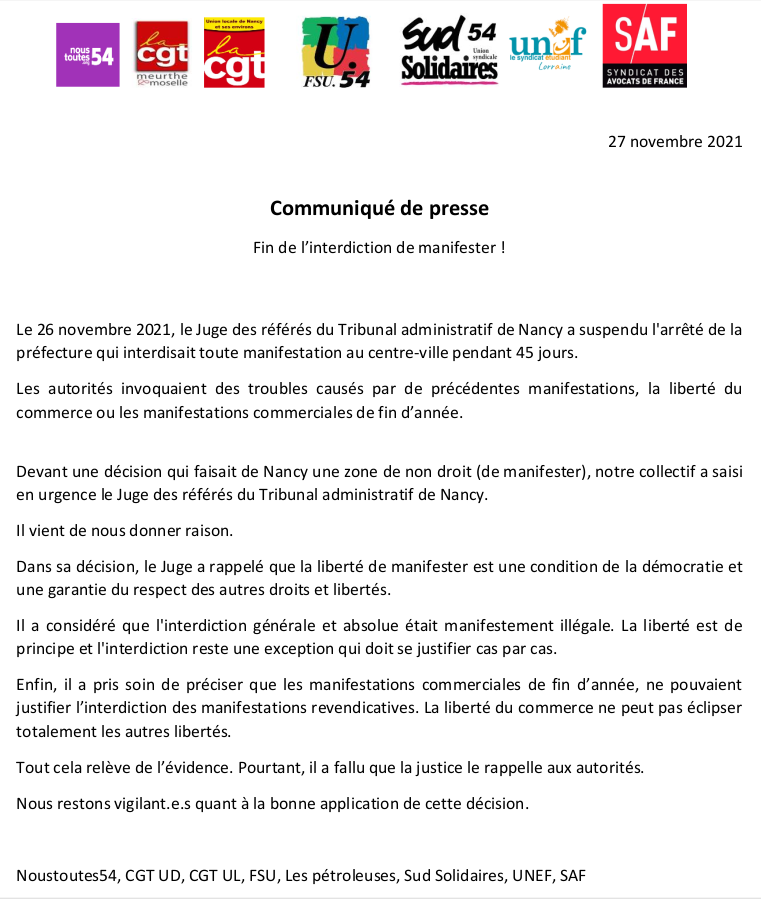 Tour des secteurs Contre la loi Rilhac-Réunion d’information syndicale, mercredi 9h-12h Bourse du travail. 28 Nov, 202130 Nov, 2021 Lire la suite Solidaires national Des mobilisations qui ne faiblissent pas 28 Nov, 202130 Nov, 2021 Lire la suite 6061626364