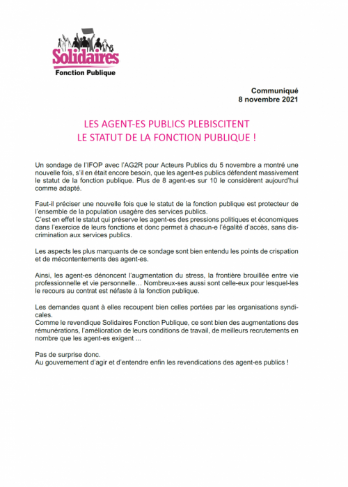 Solidaires national Les agent-es publics plébiscitent le statut de la fonction publique 9 Nov, 202113 Nov, 2021 Lire la suite Solidaires national Manifestaton nationale des retraité-e-s le 2 décembre à Paris 9 Nov, 202113 Nov, 2021 Lire la suite 6667686970
