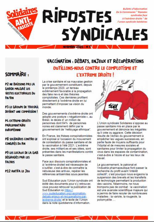 Solidaires national Ripostes syndicales contre l’extrême droite # 9 29 Oct, 202113 Nov, 2021 Lire la suite Solidaires national (Solidaires groupe Ratp) Le racisme et l’islamophobie n’ont pas leur place à la Ratp comme ailleurs 29 Oct, 202113 Nov, 2021 Lire la suite Solidaires national (SUD PTT) Libertés syndicales à la poste : une victoire pour notre syndicalisme ! 29 Oct, 202113 Nov, 2021 Lire la suite 6869707172 Nos commissions FéminismeLGBTI+ImmigrationInternational Les collectifs amis Étiquettesantifascisme antiracisme assurance chômage cheminots chômage conditions de travail crise sanitaire culture féminisme grève hopital intermittents international lutte lutte interprofessionnelle lycéens manifestation mobilisation précaires précarité rail rassemblement retraites répression salaire sans-papiers santé service public sncf Solidaires solidarité sud education 31 sud rail SUD Santé Sociaux sud éducation syndicat syndicats sécurité sociale Toulouse Université urgence sanitaire urgence sociale violences policières éducation éducation nationale Un seul cookie sera déposé sur ton ordinateur pour faciliter ta navigation. Pas plus ! Accepter Refuser