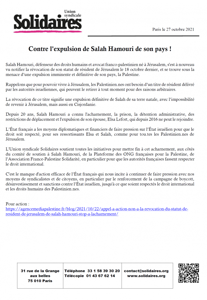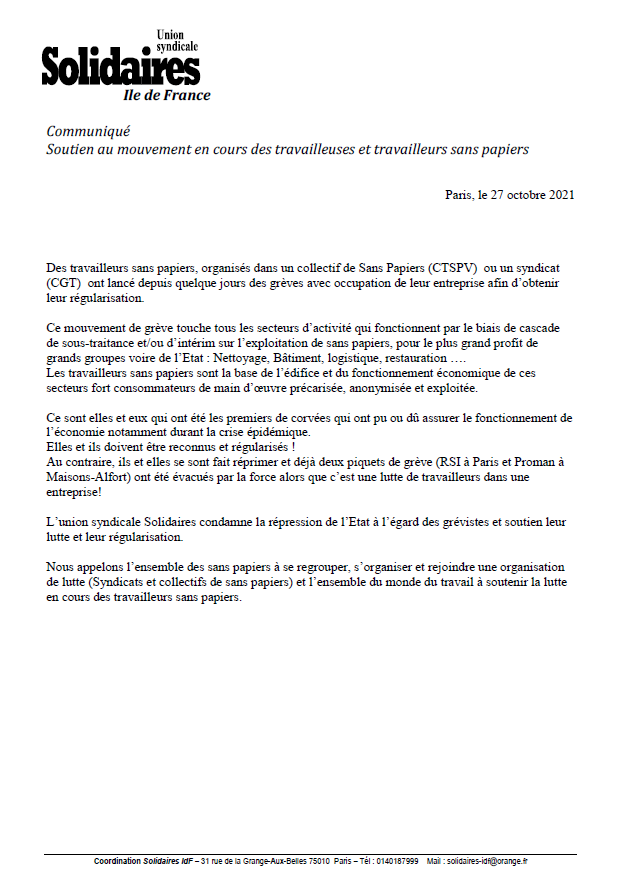 Solidaires national Soutien au mouvement en cours des travailleuses et travailleurs sans papiers 27 Oct, 202113 Nov, 2021 Lire la suite Solidaires national (Solidaires 21) Zemmour en Côte-d’Or le 6 novembre : appel à une mobilisation générale ! 27 Oct, 202113 Nov, 2021 Lire la suite Solidaires national Liberté pour les associations palestiniennes 27 Oct, 202113 Nov, 2021 Lire la suite Solidaires national Employé-es, prenons le pouvoir ! 27 Oct, 202113 Nov, 2021 Lire la suite Solidaires national (Vidéo) L’extrême-droite, ennemie des travailleuses et des travailleurs 26 Oct, 202113 Nov, 2021 Lire la suite 6970717273 Nos commissions FéminismeLGBTI+ImmigrationInternational Les collectifs amis Étiquettesantifascisme antiracisme assurance chômage cheminots chômage conditions de travail crise sanitaire culture féminisme grève hopital intermittents international lutte lutte interprofessionnelle lycéens manifestation mobilisation précaires précarité rail rassemblement retraites répression salaire sans-papiers santé service public sncf Solidaires solidarité sud education 31 sud rail SUD Santé Sociaux sud éducation syndicat syndicats sécurité sociale Toulouse Université urgence sanitaire urgence sociale violences policières éducation éducation nationale Un seul cookie sera déposé sur ton ordinateur pour faciliter ta navigation. Pas plus ! Accepter Refuser