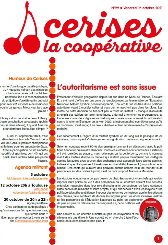 Solidaires national Cerises la coopérative n°29, octobre 2021 4 Oct, 20218 Oct, 2021 Lire la suite Tour des secteurs Permanences Sud CT à Saint-Gaudens 4 Oct, 202113 Nov, 2021 Lire la suite Sud Educ Soutien à la mobilisation sociale au Brésil 4 Oct, 20218 Oct, 2021 Lire la suite 7576777879 Nos commissions FéminismeLGBTI+ImmigrationInternational Les collectifs amis Étiquettesantifascisme antiracisme assurance chômage cheminots chômage conditions de travail crise sanitaire culture féminisme grève hopital intermittents international lutte lutte interprofessionnelle lycéens manifestation mobilisation précaires précarité rail rassemblement retraites répression salaire sans-papiers santé service public sncf Solidaires solidarité sud education 31 sud rail SUD Santé Sociaux sud éducation syndicat syndicats sécurité sociale Toulouse Université urgence sanitaire urgence sociale violences policières éducation éducation nationale Un seul cookie sera déposé sur ton ordinateur pour faciliter ta navigation. Pas plus ! Accepter Refuser