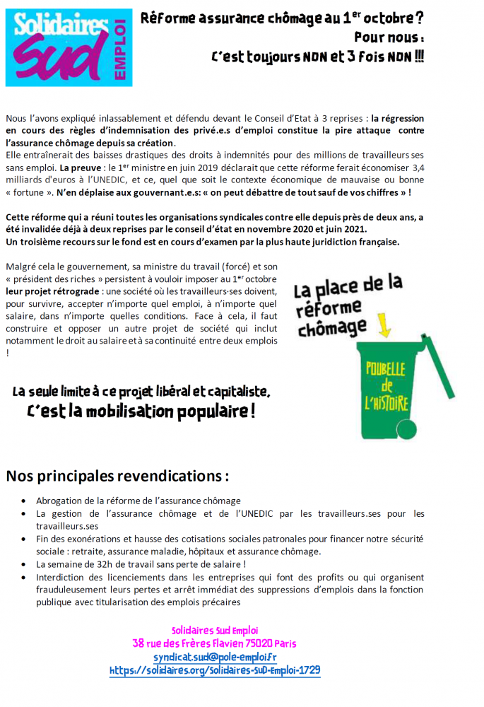Solidaires national Réforme assurance chômage au 1er octobre ? Pour nous : C’est toujours NON et 3 fois NON !!! 15 Sep, 202116 Sep, 2021 Lire la suite Solidaires national Relaxe pour les « 7 de Briançon » 10 Sep, 202116 Sep, 2021 Lire la suite Solidaires national (Solidaires Fp) La cour des comptes s’attaque une fois de plus aux fonctionnaires 10 Sep, 202116 Sep, 2021 Lire la suite Solidaires national (SUD Collectivités territoriales) Contre une société de contrôle… pour un accès universel aux soins et l’accès inconditionnel aux services publics ! 8 Sep, 202116 Sep, 2021 Lire la suite Solidaires national Le 5 octobre : mettre un coup d’arrêt aux régressions sociales ! 6 Sep, 202116 Sep, 2021 Lire la suite 8182838485 Nos commissions FéminismeLGBTI+ImmigrationInternational Les collectifs amis Étiquettesantifascisme antiracisme assurance chômage cheminots chômage conditions de travail crise sanitaire culture féminisme grève hopital intermittents international lutte lutte interprofessionnelle lycéens manifestation mobilisation précaires précarité rail rassemblement retraites répression salaire sans-papiers santé service public sncf Solidaires solidarité sud education 31 sud rail SUD Santé Sociaux sud éducation syndicat syndicats sécurité sociale Toulouse Université urgence sanitaire urgence sociale violences policières éducation éducation nationale Un seul cookie sera déposé sur ton ordinateur pour faciliter ta navigation. Pas plus ! Accepter Refuser