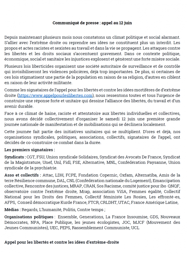 Solidaires national COMMUNIQUÉ DU COLLECTIF LCED(63) DU 19 MAI 2021 : VIOLENCES D’EXTRÊME DROITE : UN VENT MAUVAIS SUR CLERMONT 21 Mai, 20214 Juin, 2021 Lire la suite Solidaires national Audrey, assistante sociale assassinée dans l’exercice de ses fonctions 20 Mai, 20214 Juin, 2021 Lire la suite Tour des secteurs Réforme de l’assurance chômage: l’éducation nationale ne sera pas épargnée. Rassemblement samedi 22-Square Charles de Gaulle 14h00 20 Mai, 20214 Juin, 2021 Lire la suite Sud Educ Les nouvelles du jeudi 20 Mai 20 Mai, 20214 Juin, 2021 Lire la suite Solidaires national Appel à manifestation contre le racisme et les idées d’extrême droite le 12 juin 20 Mai, 20214 Juin, 2021 Lire la suite Solidaires national Samedi 22 mai : Solidarité avec le peuple palestinien 20 Mai, 20214 Juin, 2021 Lire la suite Solidaires national Assassinat d’Audrey assistante sociale territoriale 19 Mai, 20214 Juin, 2021 Lire la suite 9192939495 Nos commissions FéminismeLGBTI+ImmigrationInternational Les collectifs amis Étiquettesantifascisme antiracisme assurance chômage cheminots chômage conditions de travail crise sanitaire culture féminisme grève hopital intermittents international lutte lutte interprofessionnelle lycéens manifestation mobilisation précaires précarité rail rassemblement retraites répression salaire sans-papiers santé service public sncf Solidaires solidarité sud education 31 sud rail SUD Santé Sociaux sud éducation syndicat syndicats sécurité sociale Toulouse Université urgence sanitaire urgence sociale violences policières éducation éducation nationale Un seul cookie sera déposé sur ton ordinateur pour faciliter ta navigation. Pas plus ! Accepter Refuser