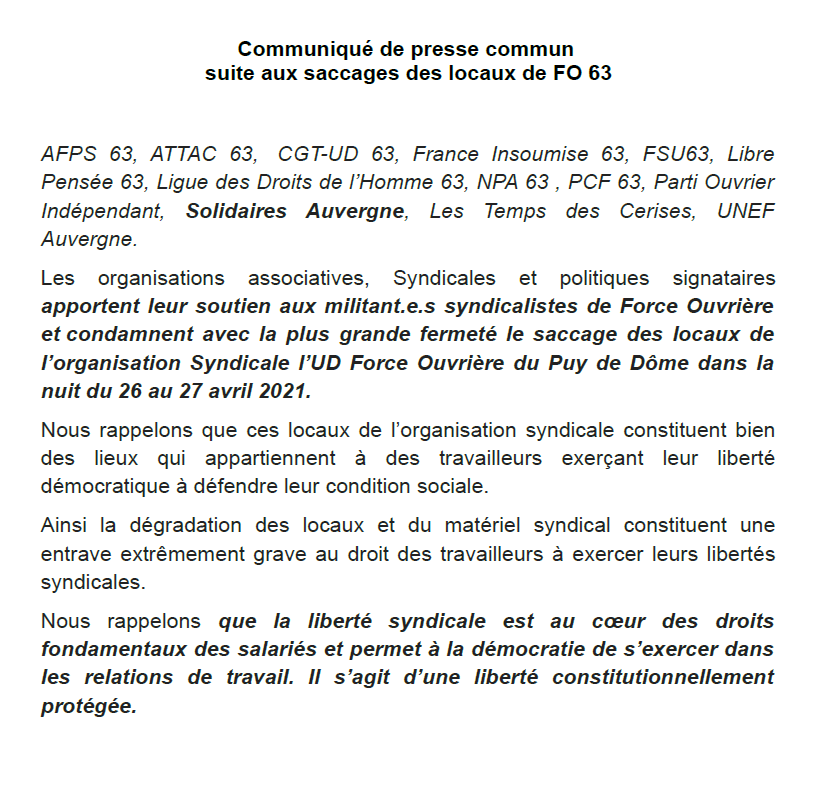 Solidaires national L’ATMF attaquée par un élu parisien : les associations ne sont pas aux ordres 30 Avr, 20214 Juin, 2021 Lire la suite Solidaires national Communiqué de presse commun suite aux saccages des locaux de FO 63 30 Avr, 20214 Juin, 2021 Lire la suite saccages locaux Solidaires 31 Solidarité internationale avec Kadour Chouicha 29 Avr, 2021 Lire la suite Algérieinternationalkaddour chouicha Solidaires national Le parcours d’Ixchel 29 Avr, 20214 Juin, 2021 Lire la suite zapatiste Tour des secteurs Stage Anti-Hiérarchie SudEduc 31-CNT 31 Jeudi 10 et Vendredi 11 Juin 29 Avr, 20214 Juin, 2021 Lire la suite sud éducation Sud Educ Nouvelles du jeudi 29 Avril 29 Avr, 20214 Juin, 2021 Lire la suite sud éducation 979899100101 Nos commissions FéminismeLGBTI+ImmigrationInternational Les collectifs amis Étiquettesantifascisme antiracisme assurance chômage cheminots chômage conditions de travail crise sanitaire culture féminisme grève hopital intermittents international lutte lutte interprofessionnelle lycéens manifestation mobilisation précaires précarité rail rassemblement retraites répression salaire sans-papiers santé service public sncf Solidaires solidarité sud education 31 sud rail SUD Santé Sociaux sud éducation syndicat syndicats sécurité sociale Toulouse Université urgence sanitaire urgence sociale violences policières éducation éducation nationale Un seul cookie sera déposé sur ton ordinateur pour faciliter ta navigation. Pas plus ! Accepter Refuser