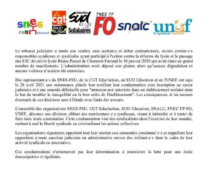 Solidaires national COMMUNIQUÉ UNITAIRE : CONDAMNATION DE SYNDICALISTES DE L’ÉDUCATION PAR LE TRIBUNAL DE CLERMONT-FERRAND 3 Mai, 20214 Juin, 2021 Lire la suite Solidaires national Valenciennes en lutte pour les travailleurs et travailleuses du monde entier 1 Mai, 20214 Juin, 2021 Lire la suite Solidaires national L’ATMF attaquée par un élu parisien : les associations ne sont pas aux ordres 30 Avr, 20214 Juin, 2021 Lire la suite Solidaires national Communiqué de presse commun suite aux saccages des locaux de FO 63 30 Avr, 20214 Juin, 2021 Lire la suite saccages locaux Solidaires 31 Solidarité internationale avec Kadour Chouicha 29 Avr, 2021 Lire la suite Algérieinternationalkaddour chouicha Solidaires national Le parcours d’Ixchel 29 Avr, 20214 Juin, 2021 Lire la suite zapatiste Tour des secteurs Stage Anti-Hiérarchie SudEduc 31-CNT 31 Jeudi 10 et Vendredi 11 Juin 29 Avr, 20214 Juin, 2021 Lire la suite sud éducation Sud Educ Nouvelles du jeudi 29 Avril 29 Avr, 20214 Juin, 2021 Lire la suite sud éducation 979899100101 Nos commissions FéminismeLGBTI+ImmigrationInternational Les collectifs amis Étiquettesantifascisme antiracisme assurance chômage cheminots chômage conditions de travail crise sanitaire culture féminisme grève hopital intermittents international lutte lutte interprofessionnelle lycéens manifestation mobilisation précaires précarité rail rassemblement retraites répression salaire sans-papiers santé service public sncf Solidaires solidarité sud education 31 sud rail SUD Santé Sociaux sud éducation syndicat syndicats sécurité sociale Toulouse Université urgence sanitaire urgence sociale violences policières éducation éducation nationale Un seul cookie sera déposé sur ton ordinateur pour faciliter ta navigation. Pas plus ! Accepter Refuser