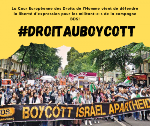 La campagne BDS reste donc parfaitement protégée par l’arrêt de la CEDH puisque c’est un mouvement antiraciste, pour l’égalité complète des droits, pour la fin des discriminations que subit le peuple palestinien, pour le respect du droit international et des droits humains universels.