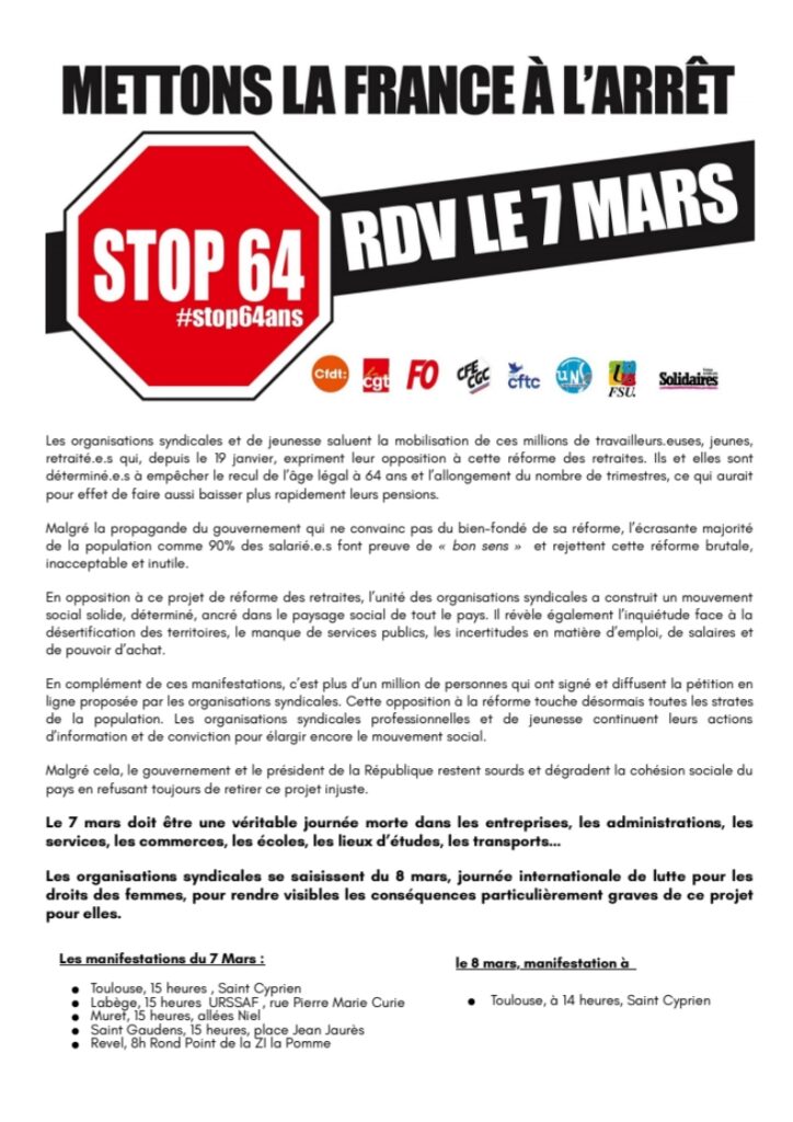 Solidaires 31Les luttes en coursAppel intersyndical 7 et 8 mars